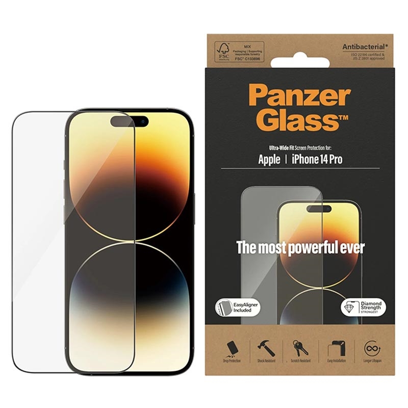 - Ochranné tvrzené sklo Ultra-Wide Fit pro iPhone 14 Pro od PanzerGlass