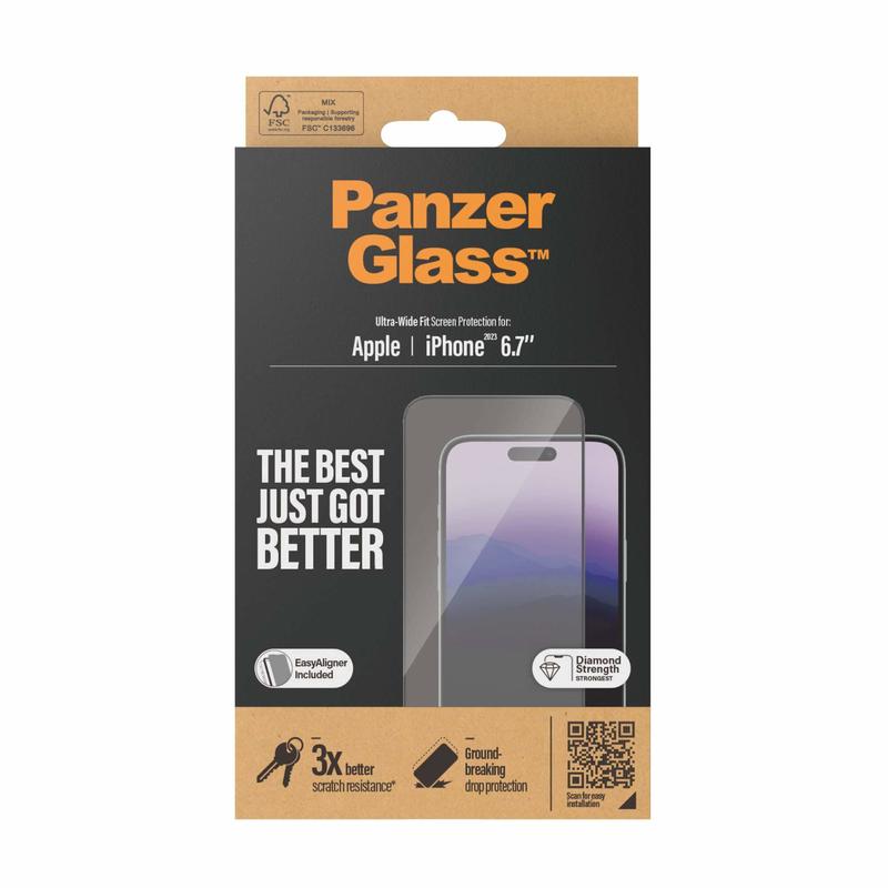 - Ochranné tvrzené sklo Ultra-Wide Fit pro iPhone 15 Plus od PanzerGlass