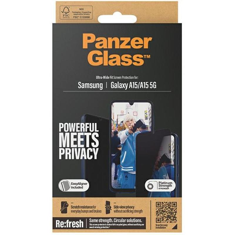 Ochranné tvrzené sklo PanzerGlass Ultra-Wide Fit Privacy EasyAligner AntiBacterial pro Samsung Galaxy A15