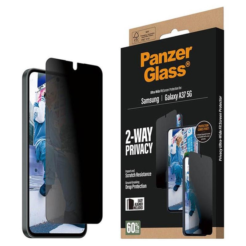 - Ochranná fólie PanzerGlass Ultra-Wide Fit Privacy EasyAligner NENÍ kompatibilní se snímačem otisků prstů Samsung Galaxy A37