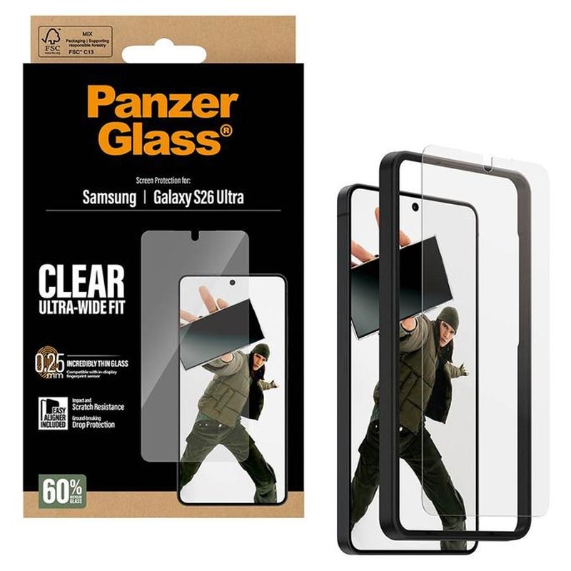 - Ochranné tvrzené sklo Ultra-Wide Fit pro Samsung Galaxy S26 Ultra od PanzerGlass