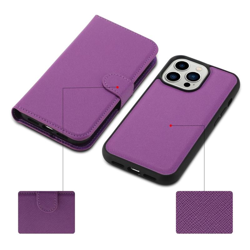 Pro iPhone 14 Pro Odnímatelné zadní pouzdro TPU s křížovou texturou PU kůže odolný proti pádu kryt Flip Stand Shell Wallet Shell