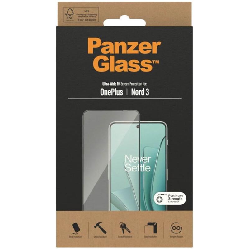 PanzerGlass Ultra-Wide Fit AntiBacterial Tempered Glass Screen Protector for OnePlus Ace 2V, Nord 3