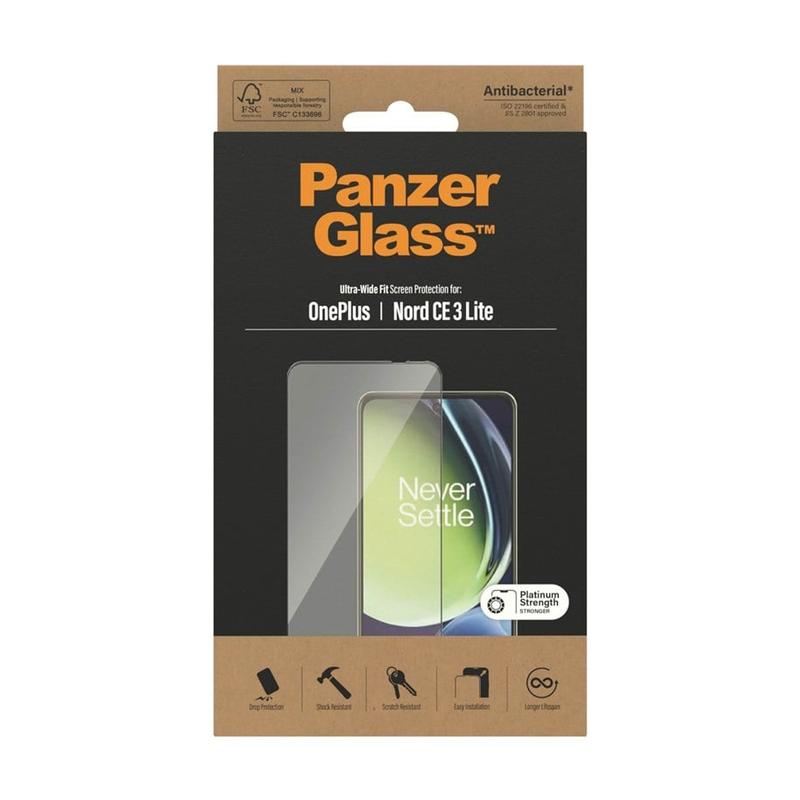 PanzerGlass Ultra-Wide Fit AntiBacterial Tempered Glass Screen Protector for OnePlus Nord CE 3 Lite, Nord N30