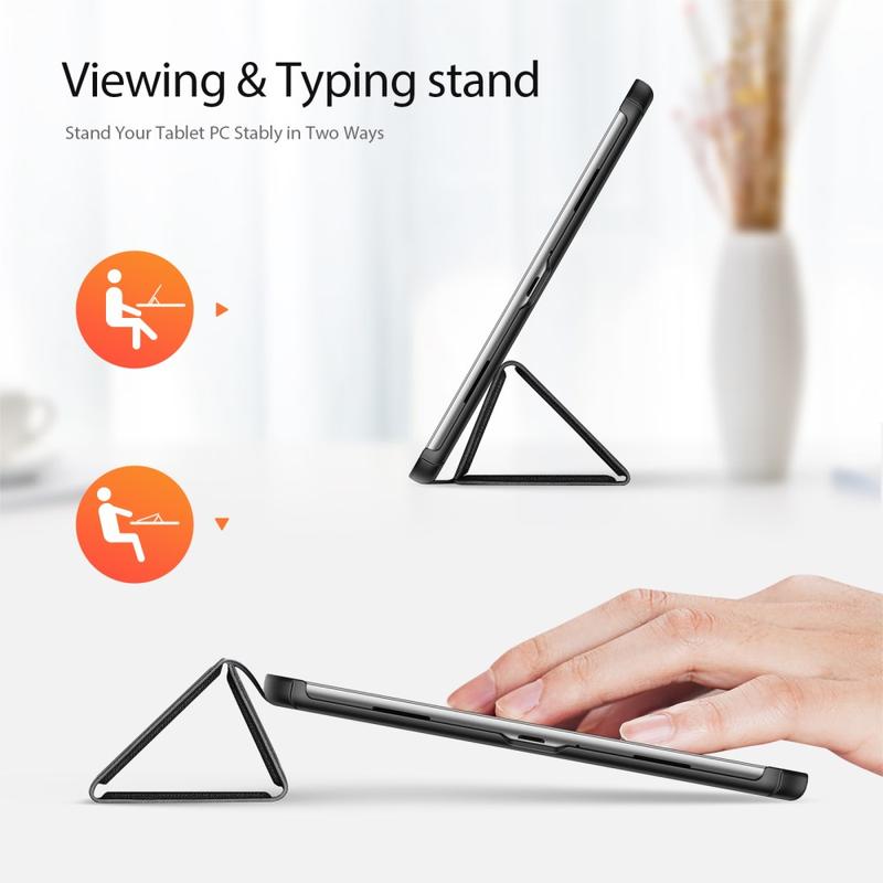 Toto příslušenství chrání zařízení před promáčknutím a poškrábáním a rozšiřuje jeho funkčnost. Přední chlopeň slouží jako stojánek se třemi režimy pro snadné psaní a sledování videa bez použití rukou.
