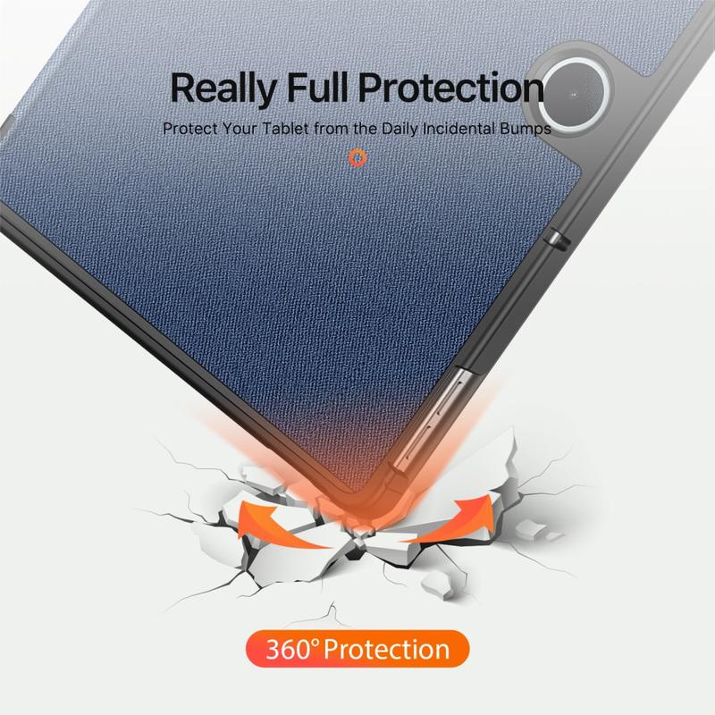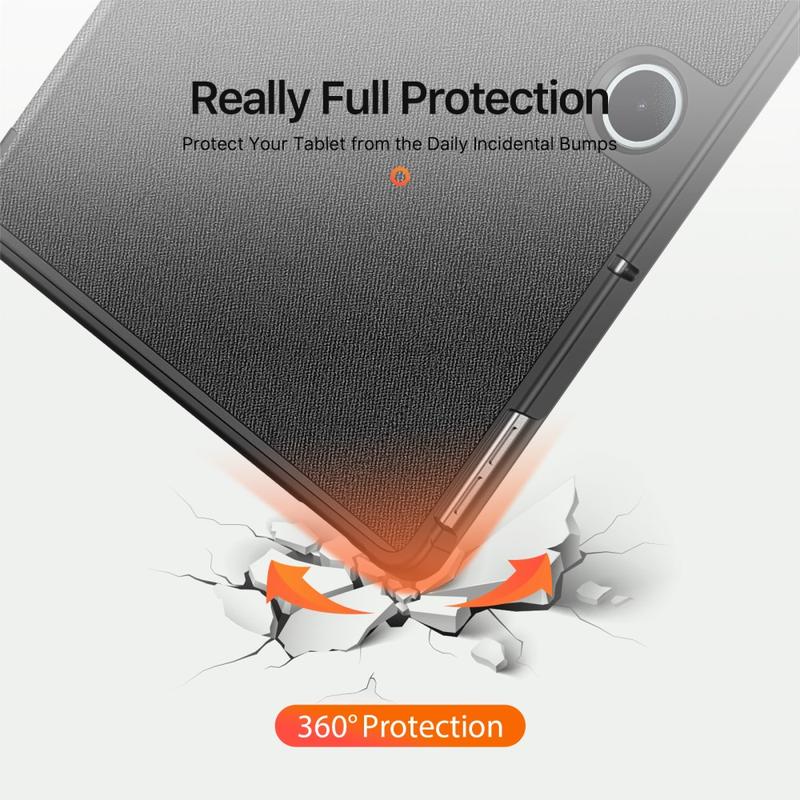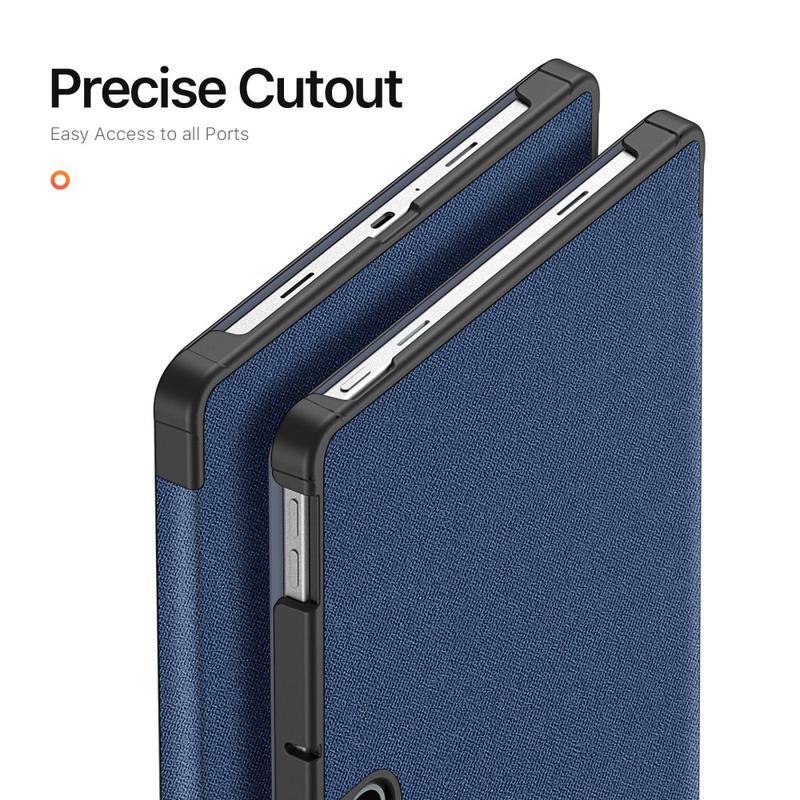Toto příslušenství chrání zařízení před promáčknutím a poškrábáním a rozšiřuje jeho funkčnost. Přední chlopeň slouží jako stojánek se třemi režimy pro snadné psaní a sledování videa bez použití rukou.