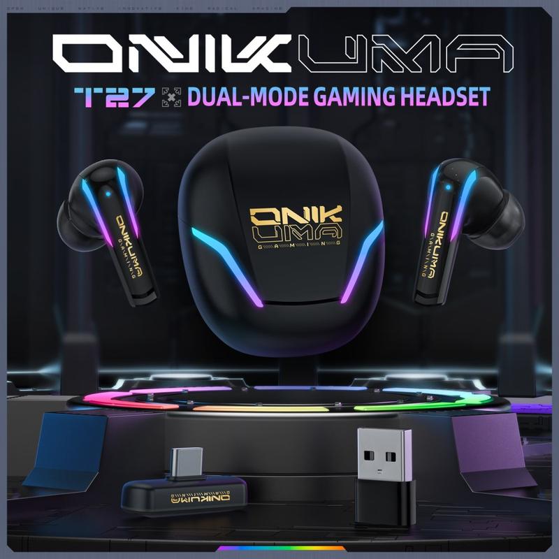Onikuma T27 Gaming Wireless Earphones - 2.4G/Bluetooth 5.3, Low Latency, 13mm Drivers, IPX4, USB-C Charging