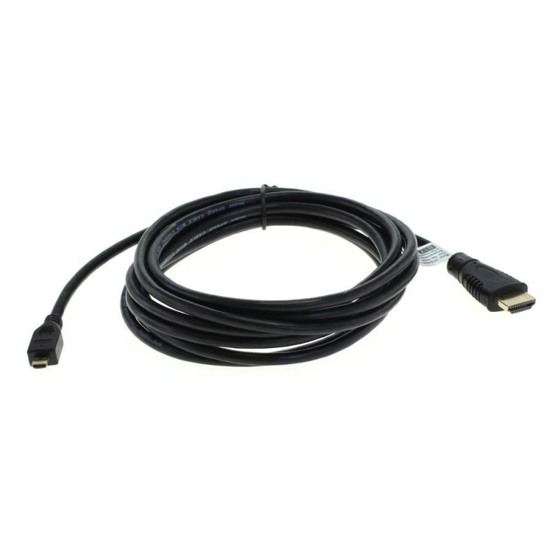 - HDMI Type A plug (TV) to Micro HDMI Type D plug (camera), both straight connectors