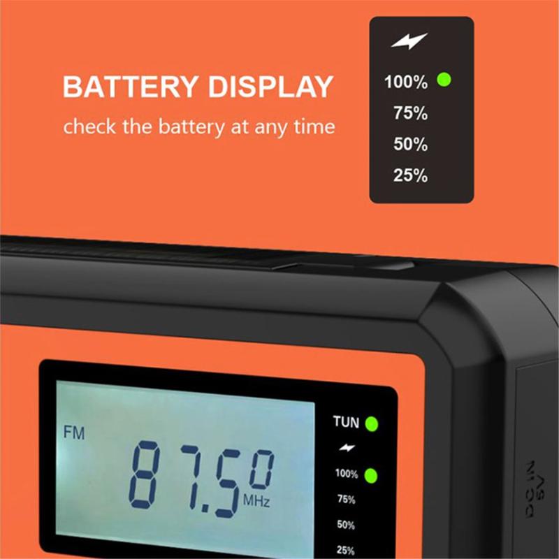 - Function: LCD digital display, solar powered, speaker, SOS, high sensitivity antenna, headphone jack, hand crank