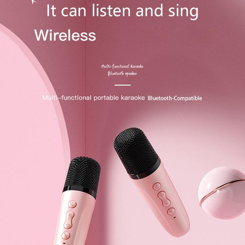 - All-in-One Portable Karaoke Setup - Combines a wireless Bluetooth speaker and two microphones in one convenient set for instant sing-alongs anytime, anywhere.