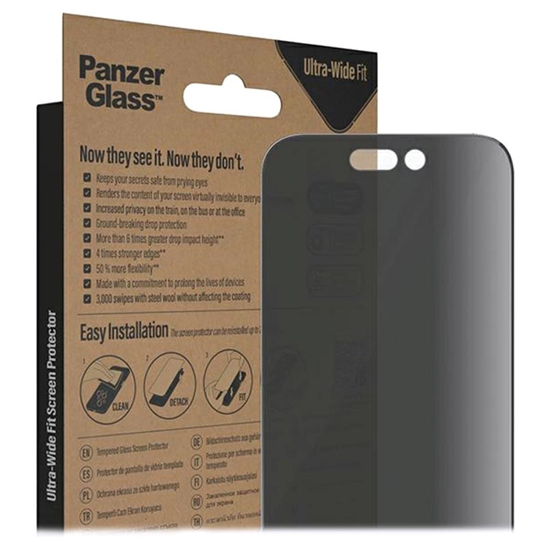 Everything displayed on your iPhone 14 Pro will stay confidential thanks to the PanzerGlass Ultra-Wide Fit Privacy screen protector.