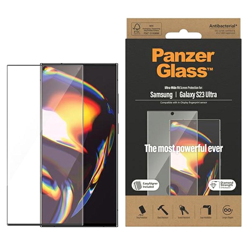 PanzerGlass Ultra-Wide Fit AntiBacterial Ochranné Tvrzené Sklo na Displej pro Samsung Galaxy S23 Ultra 5G