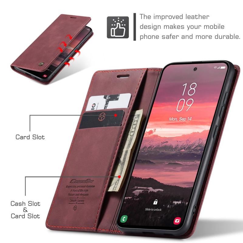 - Vestavěné magnety udrží pouzdro na peněženku řady Caseme 013 uzavřené