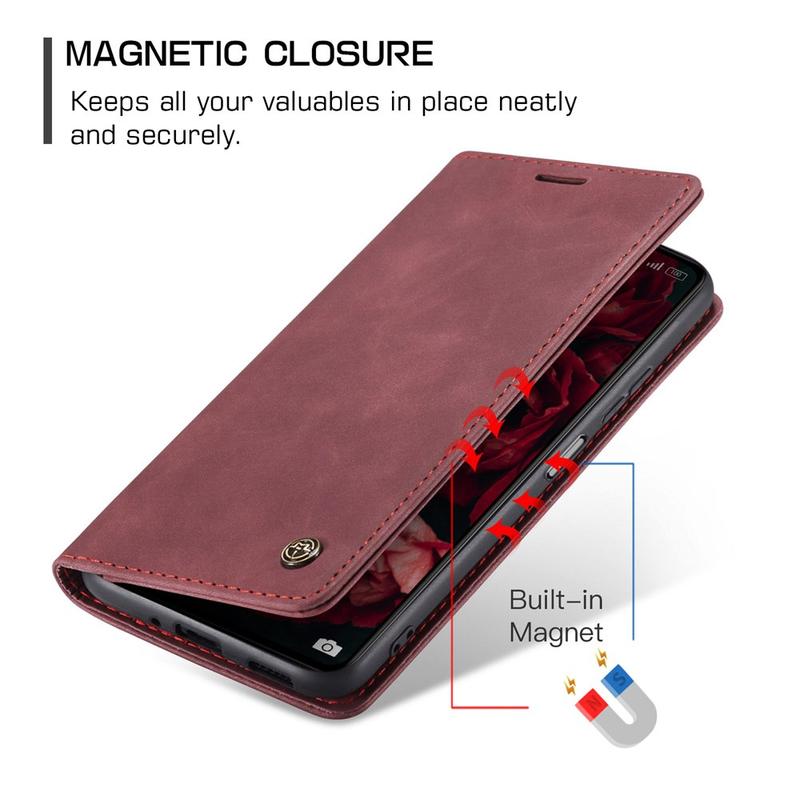 - Vestavěné magnety udrží pouzdro na peněženku řady Caseme 013 uzavřené