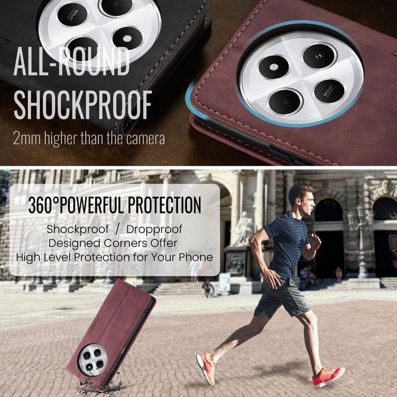 Kombinace TPU a polyuretanu poskytuje všestrannou ochranu pro Xiaomi Redmi 14C a chrání jej před prachem, špínou, nárazy, poškrábáním a každodenním opotřebením. Magnetická přitažlivost udržuje pouzdro zavřené a chytrý design umožňuje použití hands-free při sledování mediálního obsahu.