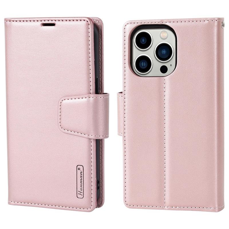 HANMAN Miro2 Series pro iPhone 14 Pro PU kožená peněženka pouzdro na telefon Magnetický odnímatelný stojánek Flip Cover