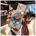 Hybridní pouzdro pevného vzoru se stojanem a šňůrou pro Samsung Galaxy S21 5G