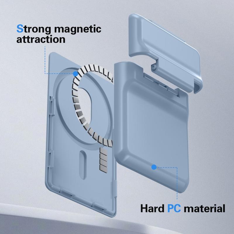 This magnetic card holder with kickstand is a sleek and practical accessory designed for iPhone 12-17 series devices. Built from durable hard PC material, it snaps securely onto the back of your phone using powerful magnetic absorption. It keeps your essential cards close at hand while adding hands-free viewing convenience, all in a slim, everyday-friendly design.