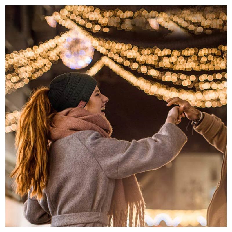 Vystřelte svůj seznam skladeb, i když je venku zima, pomocí této pletené náhlavní soupravy Bluetooth s pletenou zimní čepicí.
