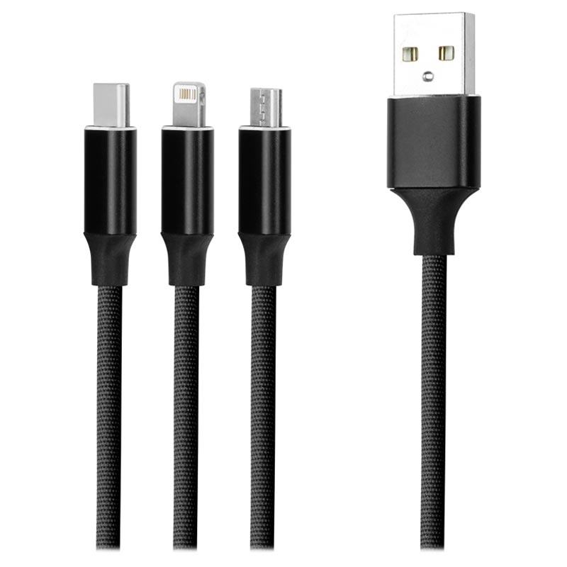 • Pletený Nabíjecí Kabel USB Forever 3 v 1 - Lightning, Type-C, MicroUSB, 2A