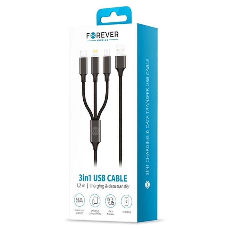- Vysoce kvalitní nabíjecí USB kabel 3 v 1 od Forever