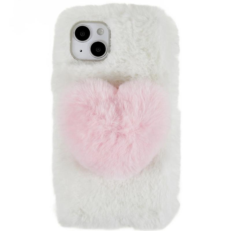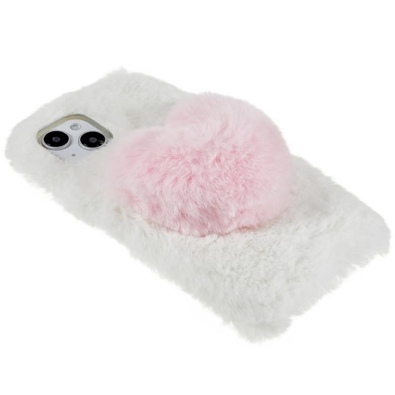 Pro iPhone 14 Plus Načechraný plyšový měkký TPU obal na telefon Cute Love Heart Design Zadní kryt odolný proti poškrábání a upuštění