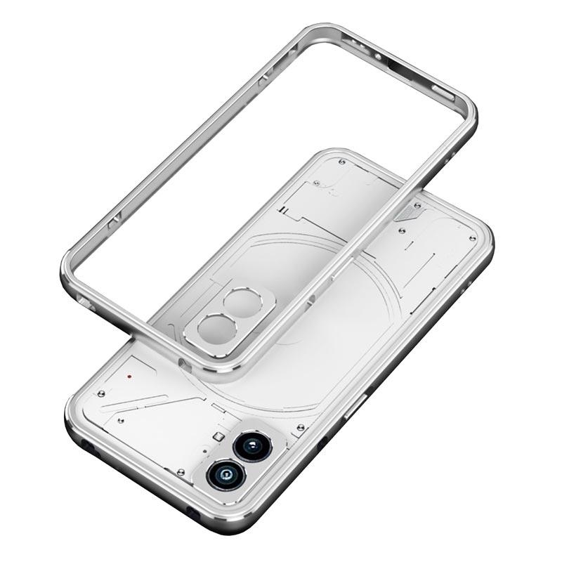 Protect your Nothing Phone (1) with this perfectly designed metal bumper with camera lens ring protector. This bumper allows you to show the original design of your Nothing Phone (1), and preserve the phone's natural look. Made of lightweight and durable metal material, this elegant and minimalistic Nothing Phone (1) bumper adds no bulky feel.