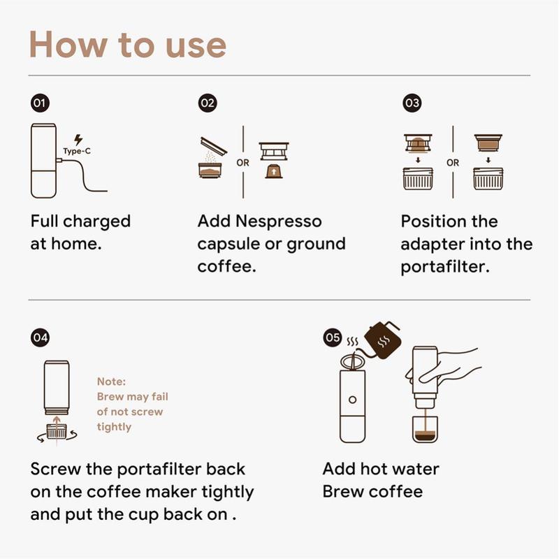 Portable 2-in-1 Cordless Espresso Coffee Maker - Perfect for Travel, Car, and Outdoor Use