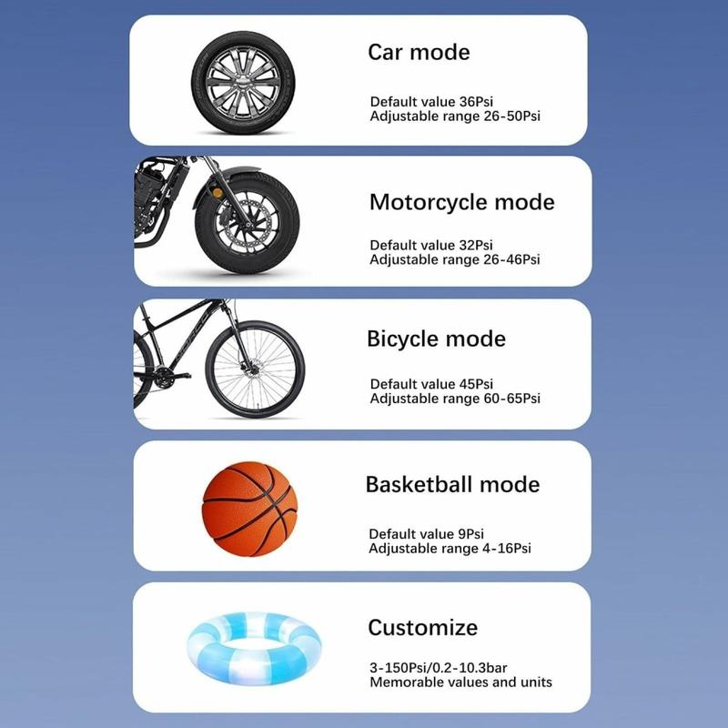 - Versatile preset modes: Choose from car, motorcycle, bicycle, or ball mode, plus manual mode.