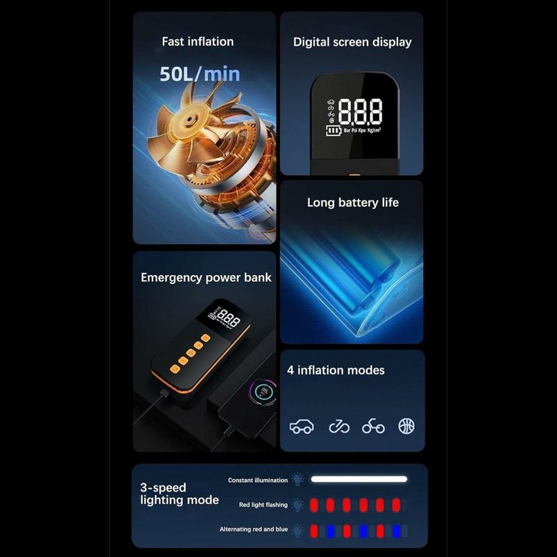 Unlike bulky traditional air compressors, this wireless digital inflator is lightweight, portable, and simple to use. Its smart display, preset modes, and powerful inflation speed make it a practical companion for safe driving and active lifestyles.