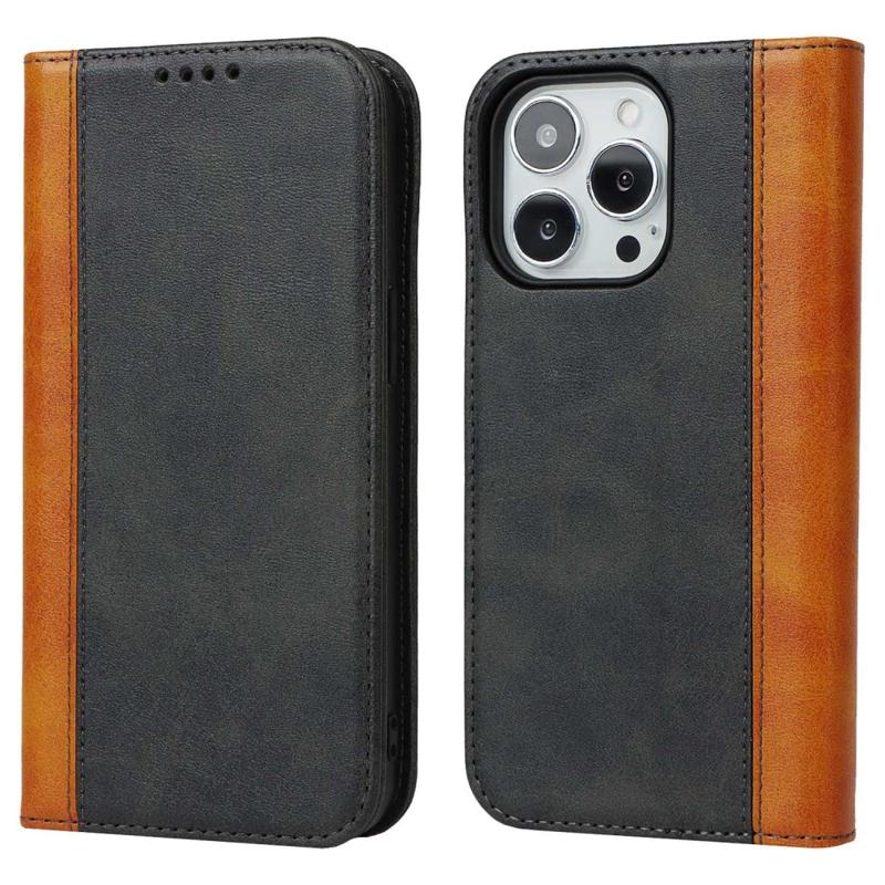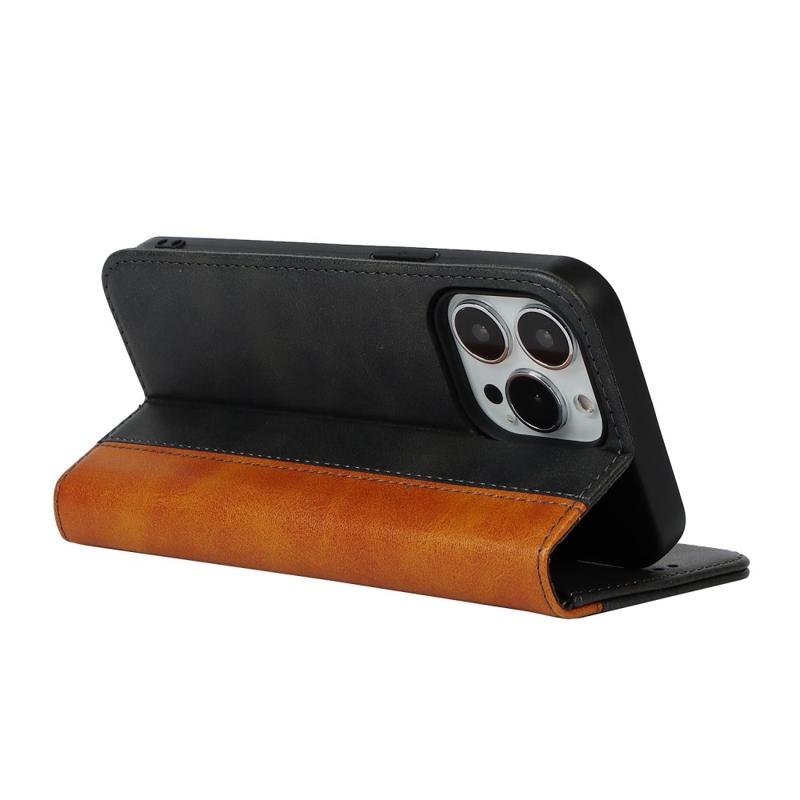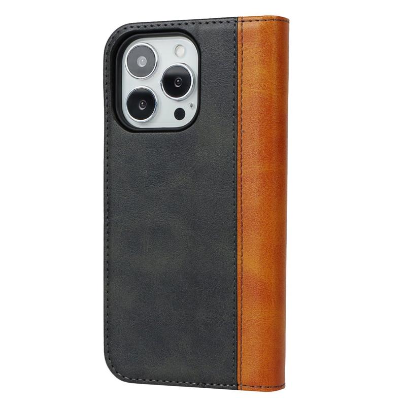 Pro iPhone 14 Pro Max teletextura PU kůže Nárazuvzdorné pouzdro na peněženku Dvoubarevné spojování magnetický automaticky absorbovaný skládací kryt stojanu