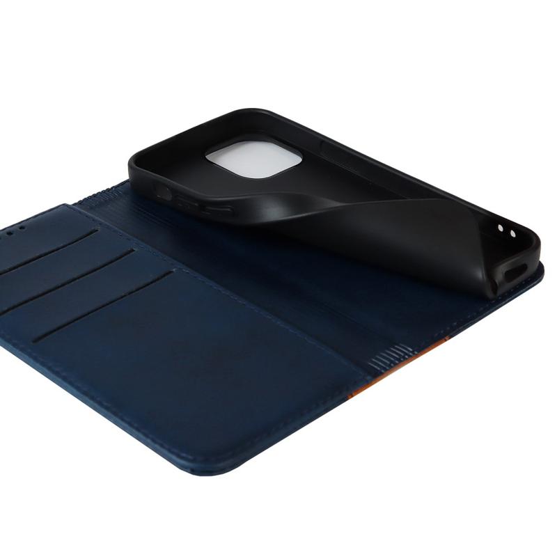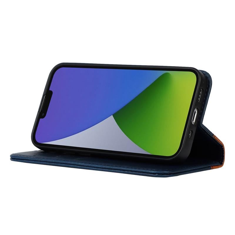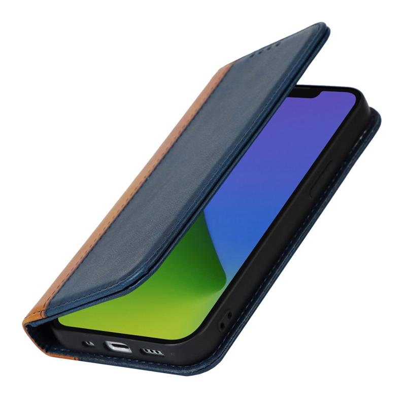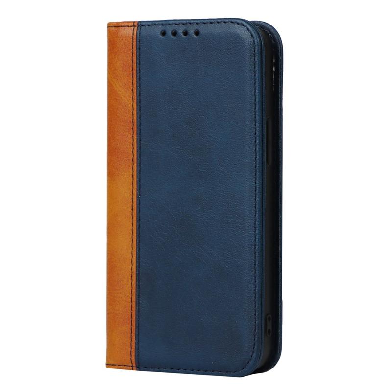 Pro iPhone 14 Dvoubarevné spojování s magnetickým automaticky absorbovaným lýtkovým povrchem PU kožené pouzdro na telefon odolný proti pádu Kryt stojánku na peněženku