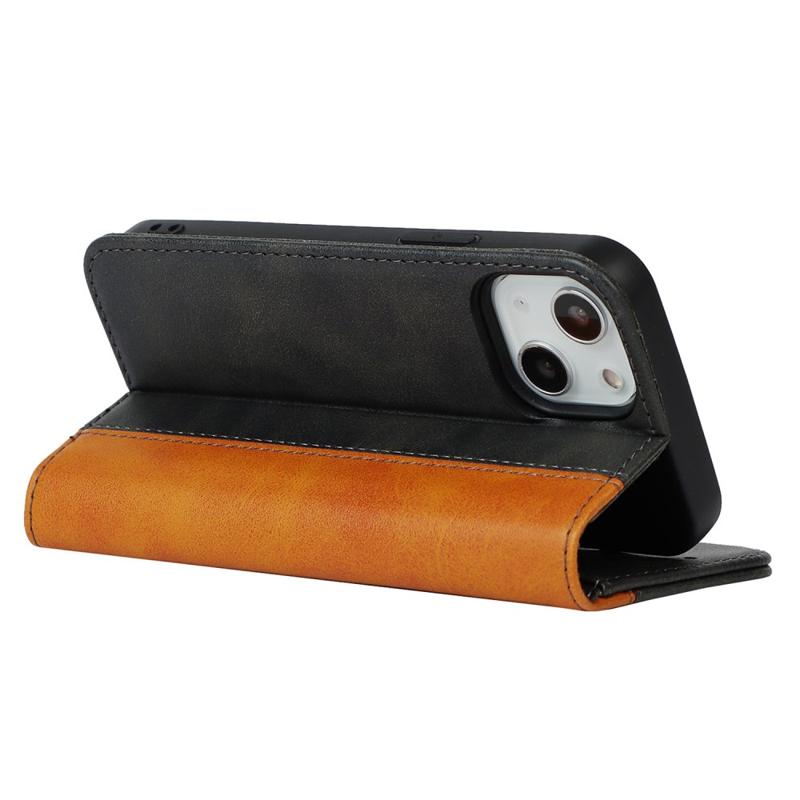 Pro iPhone 14 Dvoubarevné spojování s magnetickým automaticky absorbovaným lýtkovým povrchem PU kožené pouzdro na telefon odolný proti pádu Kryt stojánku na peněženku