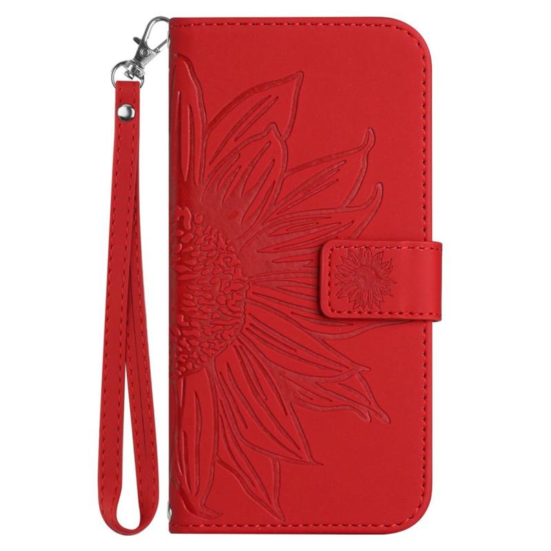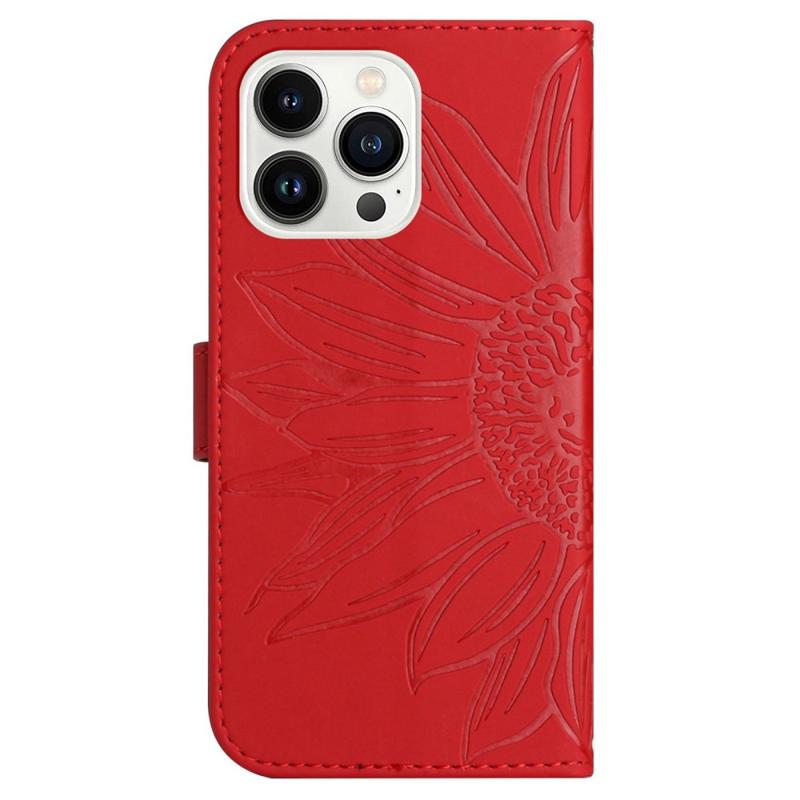 Bump Proof Flip Case pro iPhone 14 Pro Max, HT04 Slunečnicový stojánek s potiskem PU kožený magnetický kryt na peněženku s řemínkem