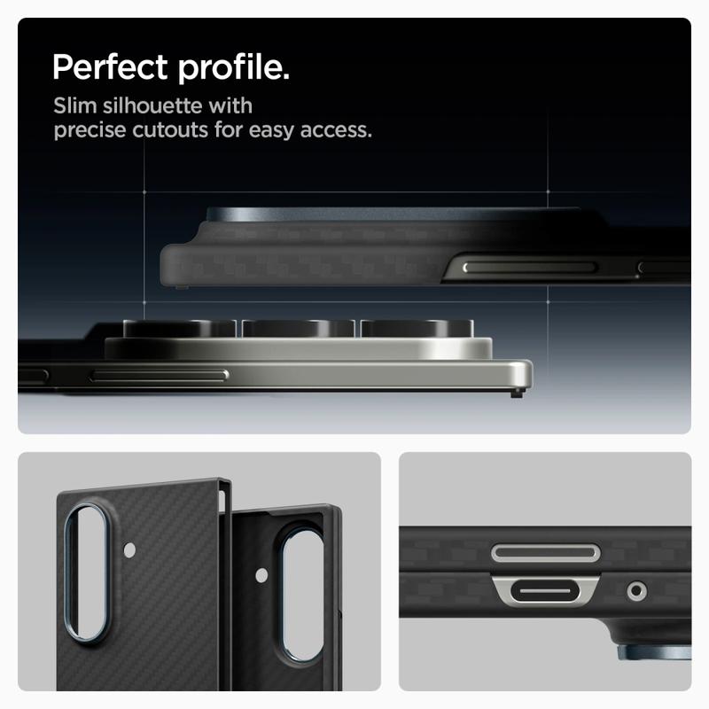 Vysoce kvalitní prémiové pouzdro od Spigen, navržené tak, aby dokonale padlo na váš Samsung Galaxy Z Fold7 a poskytovalo vynikající ochranu před každodenním poškozením. Pouzdro je vyrobeno z polykarbonátu s uretanovým povlakem a vašemu Samsung Galaxy Z Fold7 přidává minimální objem a váhu.