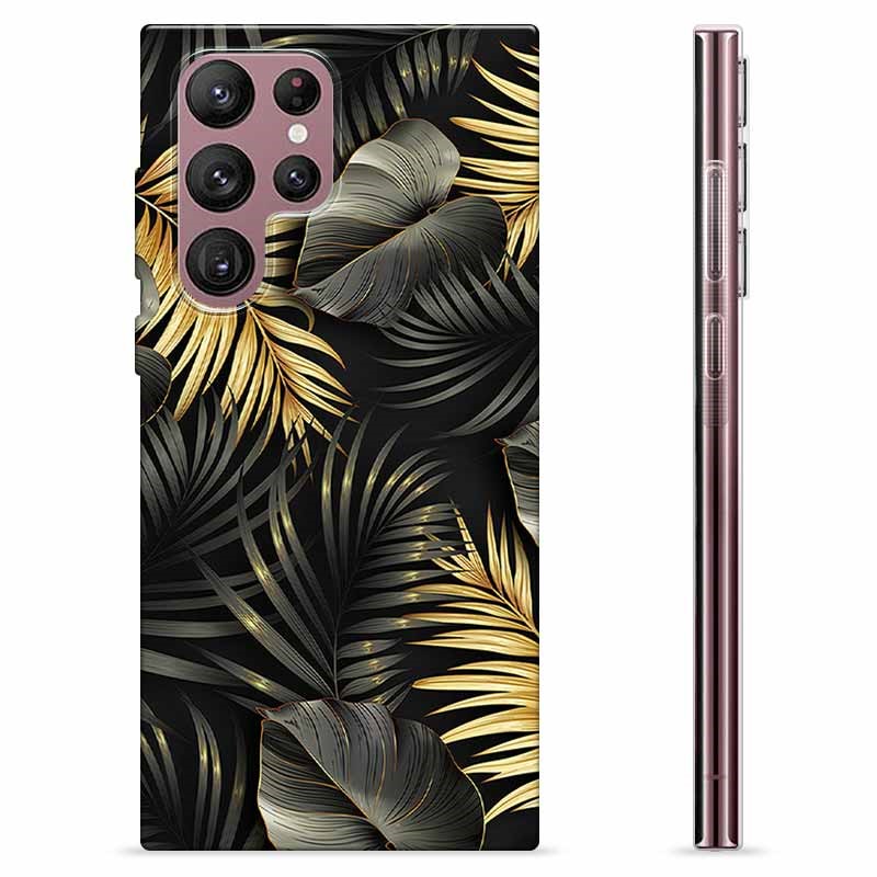 Pouzdro TPU Samsung Galaxie S22 Ultra 5G - Zlaté listy