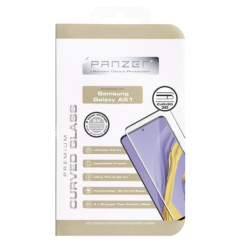 Ultimate Ochrana na obrazovce - Premium Porzer Premium 3D zakřivené skvrny pro Samsung Galaxy A51 má hladké, zaoblené okraje a pokrývá celou obrazovku bez mezer.