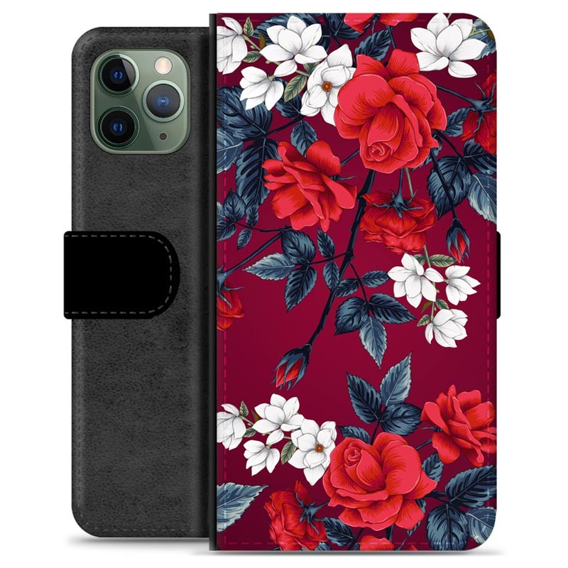 Prémiové peněženkové pouzdro iPhone 11 Pro - Vintage květiny