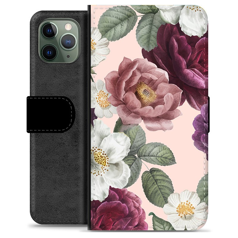 Prémiové peněženkové pouzdro iPhone 11 Pro - Romantické květiny