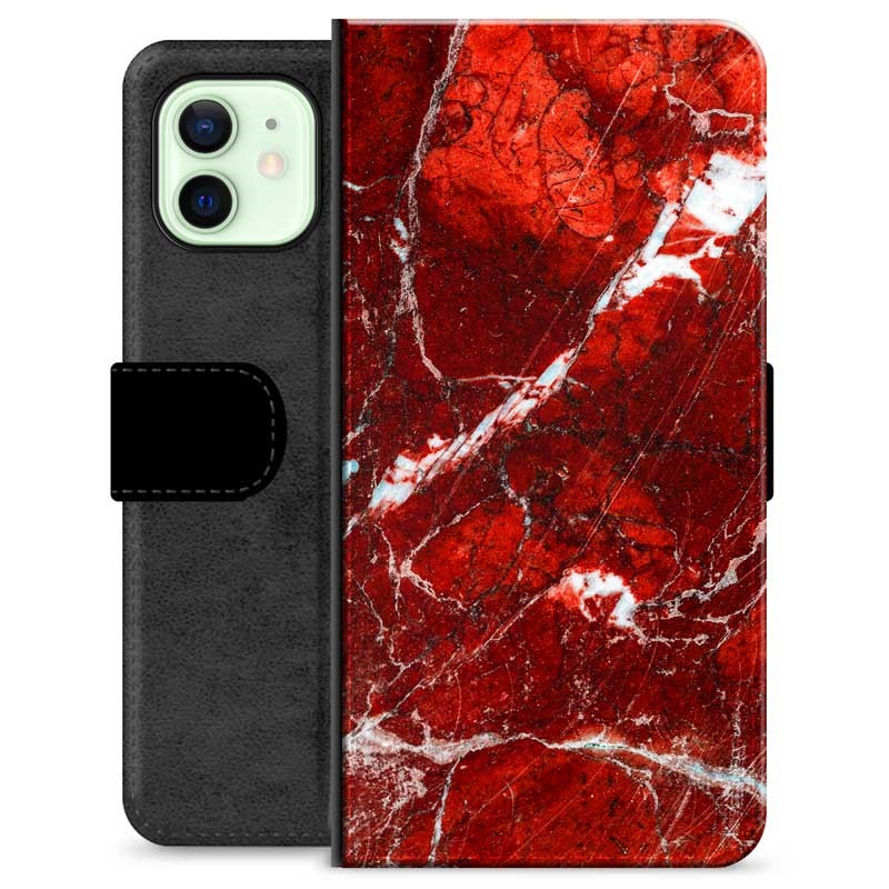 Prémiové peněženkové pouzdro iPhone 12 - Červený mramor