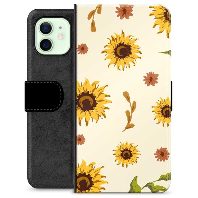 Prémiové peněženkové pouzdro iPhone 12 - Slunečnice