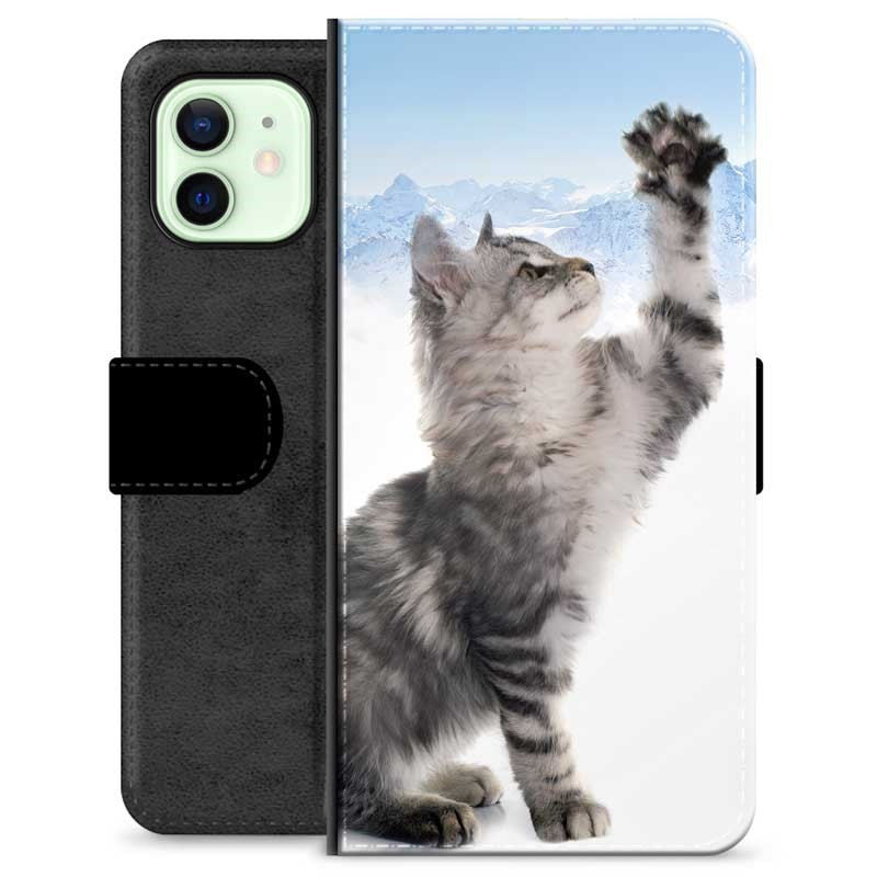 Prémiové peněženkové pouzdro iPhone 12 - Kočka