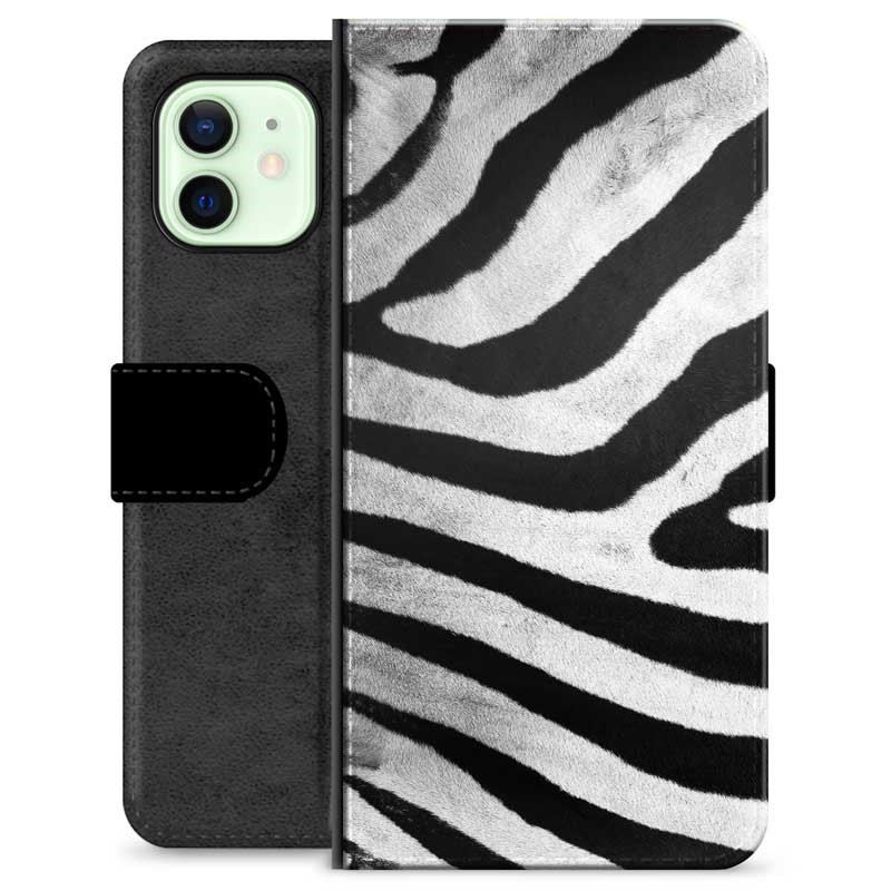 Prémiové peněženkové pouzdro iPhone 12 - Zebra