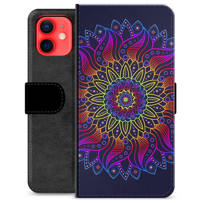 Prémiové peněženkové pouzdro iPhone 12 mini - Barevná mandala