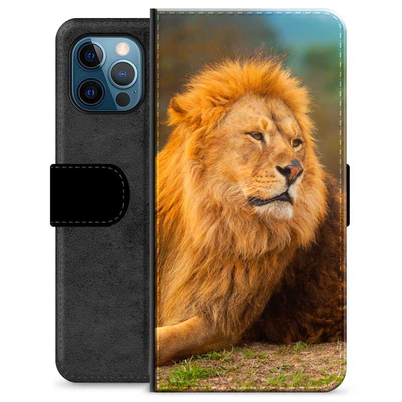 Prémiové peněženkové pouzdro iPhone 12 Pro - Lev