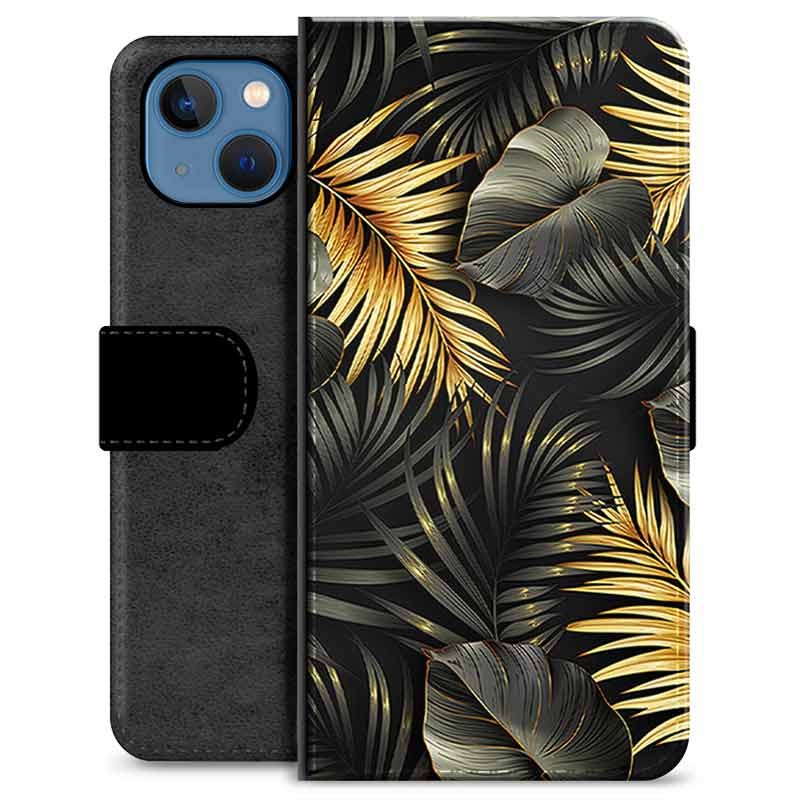 Prémiové peněženkové pouzdro iPhone 13 - Zlaté listy
