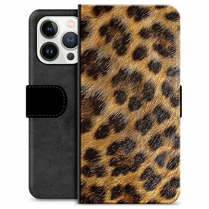 Prémiové peněženkové pouzdro iPhone 13 Pro - Leopard