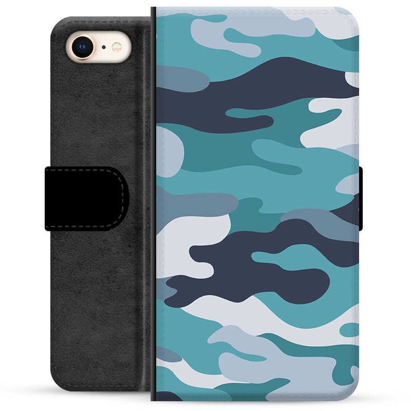 Prémiové peněženkové pouzdro iPhone 7/8/SE (2020)/SE (2022) - Blue Camouflage