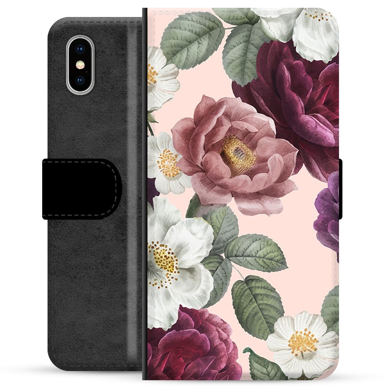Prémiové peněženkové pouzdro iPhone X / iPhone XS - Romantické květiny