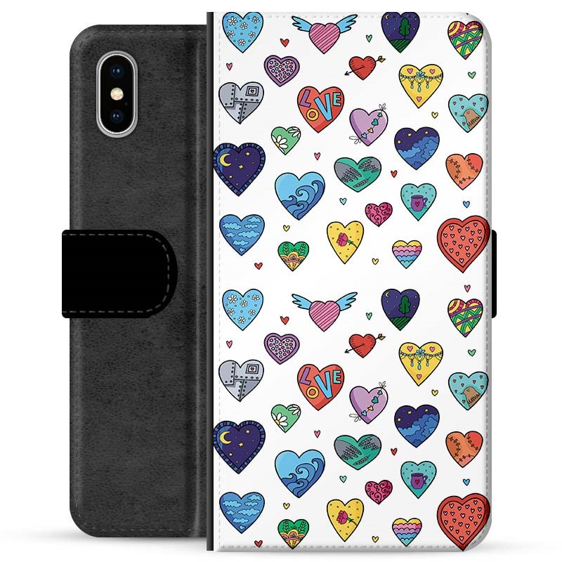 Prémiové peněženkové pouzdro iPhone X / iPhone XS - Hearts